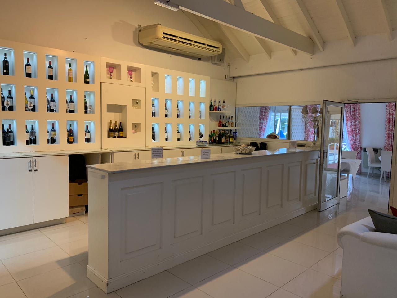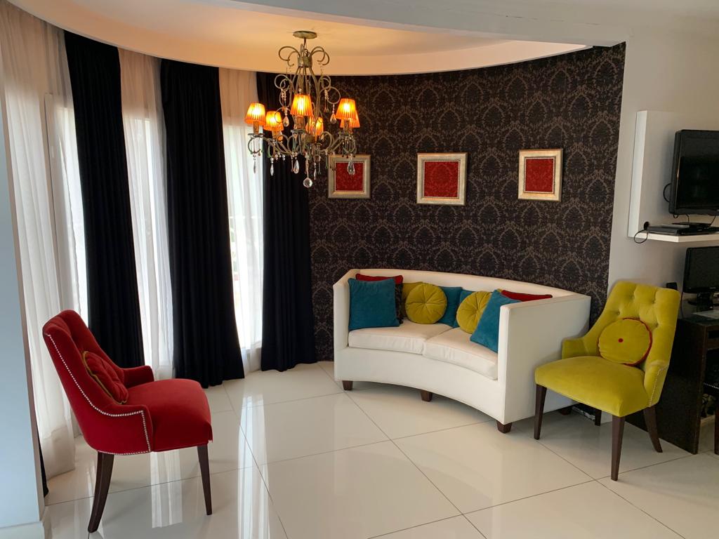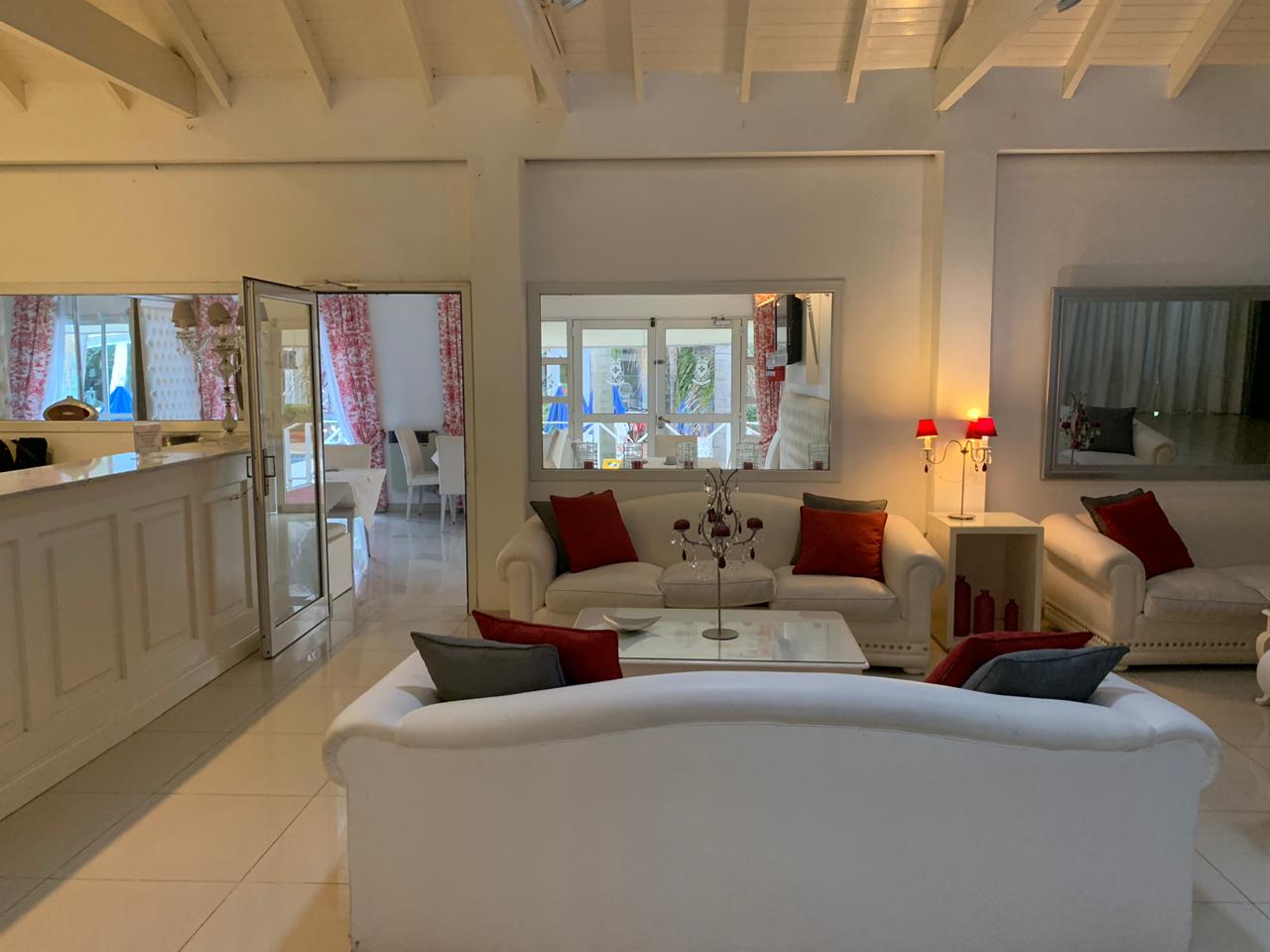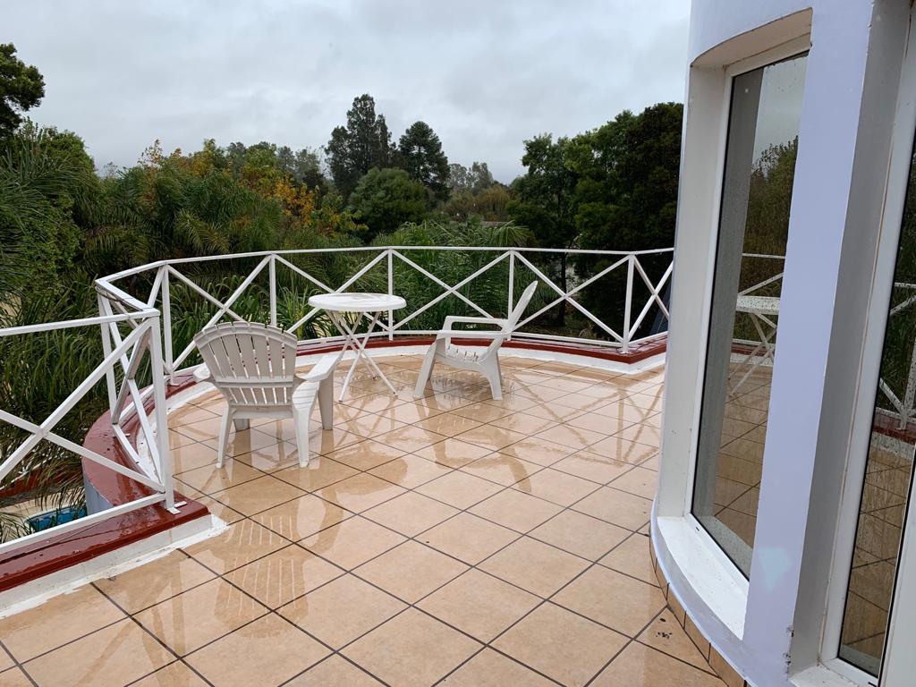 Sala de estar con vista al natatorio, bar y comedor