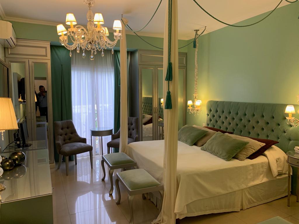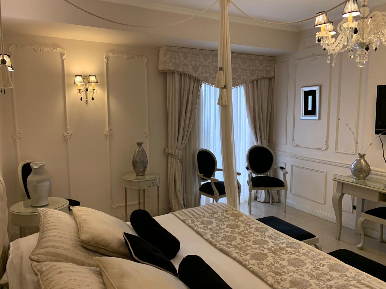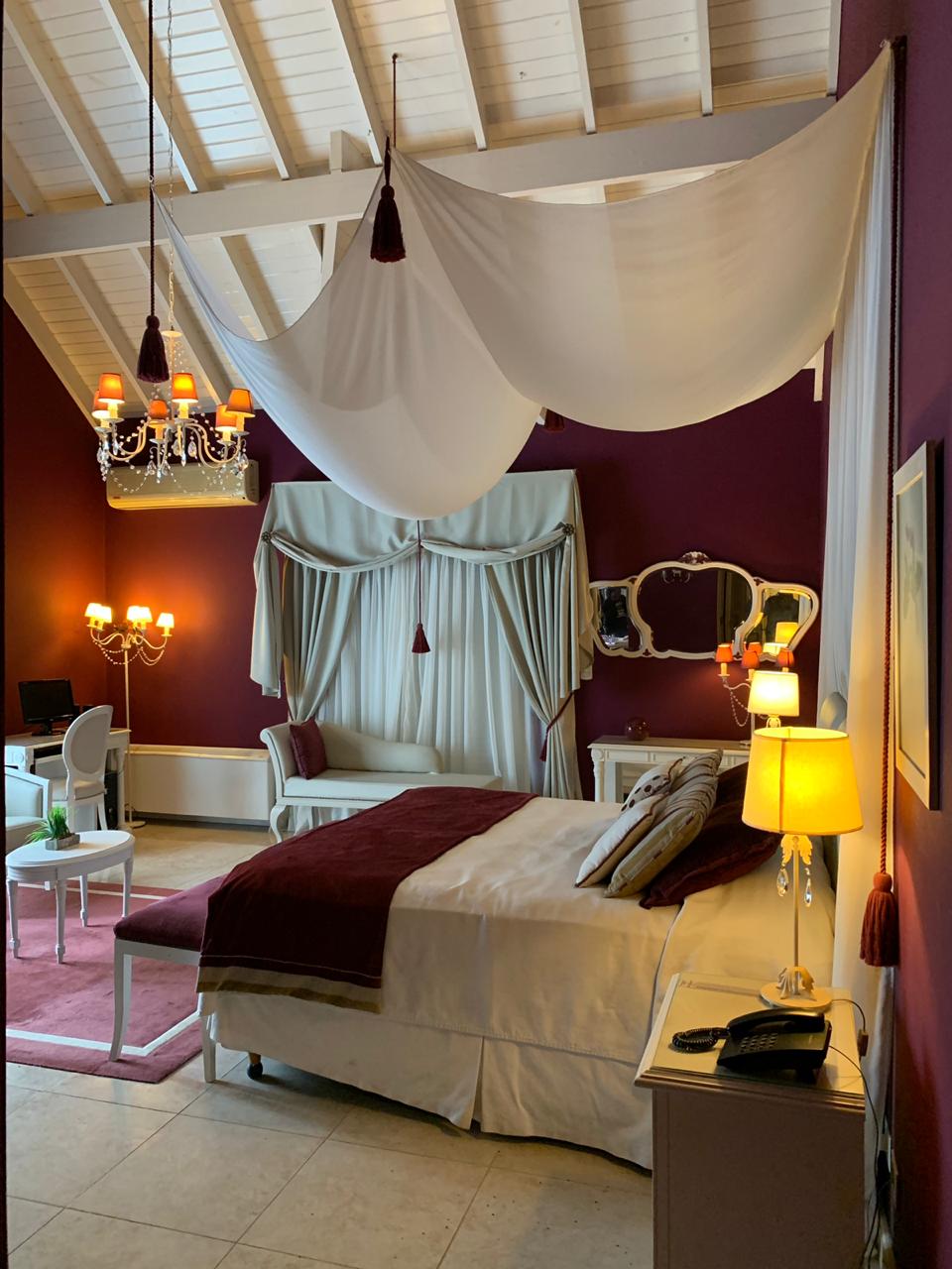 Suites Imperiales de 4 plazas (sommiers), con acceso directo a la piscina cubierta climatizada. Muy amplias. Impactante decoración. Equipadas con aire frío-calor, frigo bar,