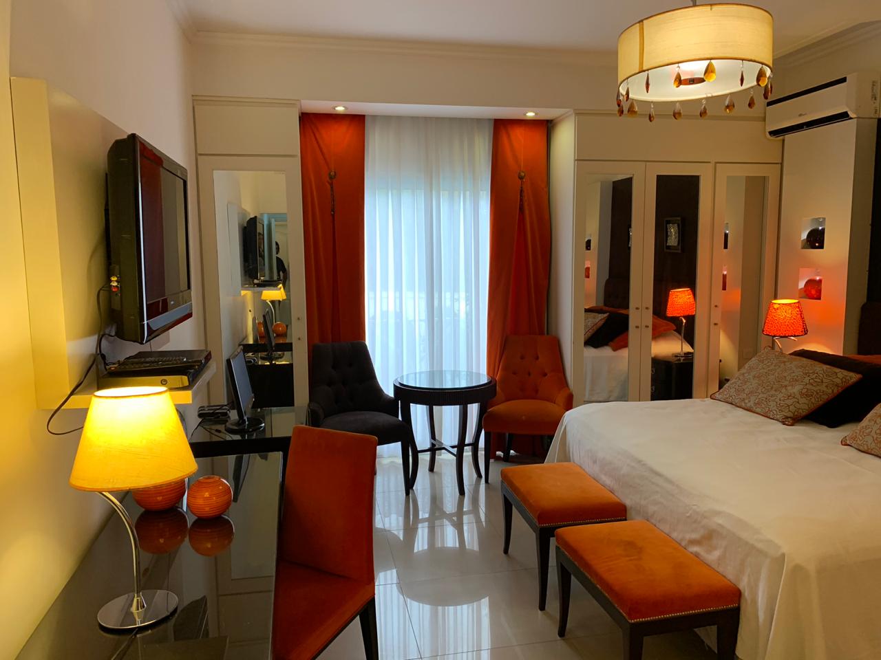 Todas las habitaciones están equipadas con cómodos sommiers, aire acondicionado, calefacción, ventilador y TV con cable. Las suites están equipadas con juego de sillones, baño y ante baño, secador de cabello, frigobar, TV de 25” a 29” con DVD y caja de seguridad digital.